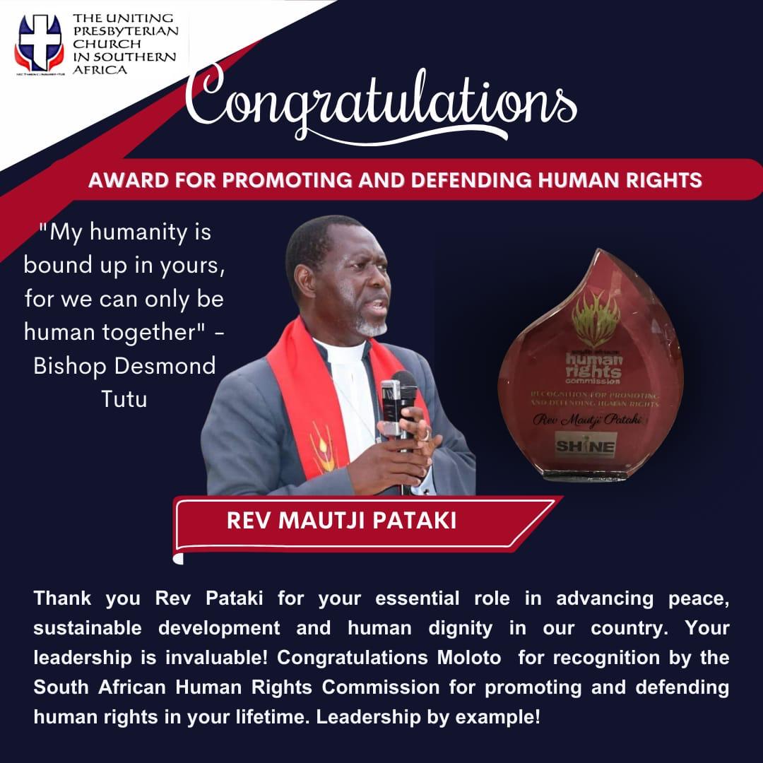 SA Human Rights Commission recognised Rev Mautji Pataki for defending and promoting human rights since the birth of our democracy 30 years ago